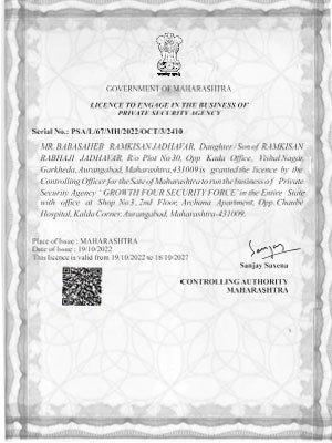 Growth Four Security Force is a reliable and professional security and labour contractor based in Chhatrapati Sambhajinagar (Aurangabad), Maharashtra. We provide well-trained, disciplined and verified security personnel for industries, corporate offices, hotels, hospitals, banks, jewellery shops, construction sites and residential societies.